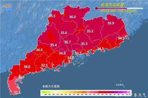 9-10日:全省多云为主,其中粤西多云间阴天有分散小雨。最高气温:粤西31~33℃,其余市县33~36℃。